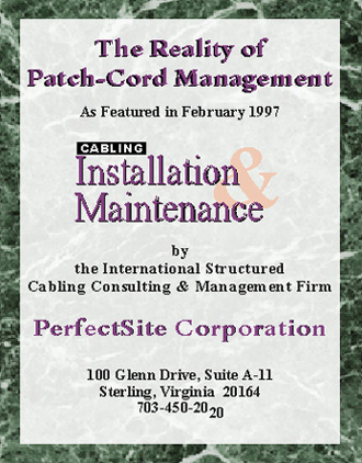 Every once in a while, a company will introduce a product that has everyone asking, "Why did I think of that?" So it is with the brainchild of Dennis Mazaris, President of Concert Technologies, Dulles, VA, 703-796-5408. Who hasn't wrestled with a tangled mass of patch cords of different (or the wrong) lengths? They're hard to work with, and it's impossible to achieve a professional, aethetically attractive installation. The PerfectPatch is a small, plastic device that easily and efficiently takes up excess cord length for a neat, high density installation. PerfectPatch is patent pending and is available through Graybar and Anixter. You can get a complete description of this neat product by checking out the website at www.perfectpatch.com.
