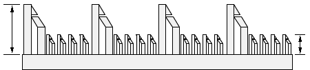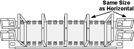 A vertical patch-cord management system usually consisted of either brackets or channels. The brackets came in many sizes and shapes (see figure 10), but were often comparable in size to their horizontal counterparts, even though required to handle many more cables (see figure 11). Channels, because they are more restrictive, showed by far the most problems when it came to bend radius and cable slack (see figure 12). (Cabinets also exhibited more problems than racks with bracket managers for the same reason: Their restrictiveness lowered bend radius and made slack more difficult to deal with.)