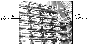 Supplemental support from the hook-and-loop or cable-tie systems has improved substantially over the last two years, but none of the sites studied used these methods as their sole provider of support. In fact, Velcro(r) strips or plastic tie wrappers were more often used in desperation just to keep patch cords out of the way. In each case where such devices were employed, it took longer to identify a patch cord because it was first necessary to remove the Velcro strip or tie wrap (see figure 13).