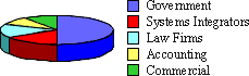 To examine the state of the patch-cord management systems, Concert Technologies (Dulles, VA), a network infrastructure consulting and services firm, conducted a study of 20 sites in the Washington, DC, area during eight months in 1996. To qualify for the study, a site had to have at least 100 unshielded twisted-pair (UTP) or screen twisted-pair (ScTP) modular patch cords attached to a single or adjacent racks or cabinets. The sites included government installations (50%), systems integrators (15%), law firms (15%), accounting firms (10%), and commercial establishments (10%) (see figure 2). | ![]() Figure 2. Breakdown of Sites Studied by PerfectSite. |