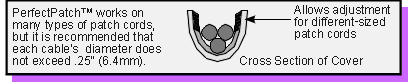 Although the PerfectPatchTM has been designed to work in a high-speed channel or link at Category 5 and beyond, performance levels, you will find that the PerfectPatchTM works on many other types of patch cords besides 4 pair UTP and duplex multimedia fiber because of its adjustability, but it is recommended that the cable diameter not exceed 1/4 inch (6.4mm) (figure 1).