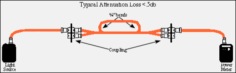 Although there are attenuation requirement tests stated for fiber cable and components throughout section 12, "Optical Fiber Cabling Systems" in the TIA/EIA-568-A, the same results in attenuation will occur when bending patch cords. To get accurate bend readings, it is recommended to use a minimum of 100 feet (30.48m) of cable.
